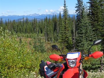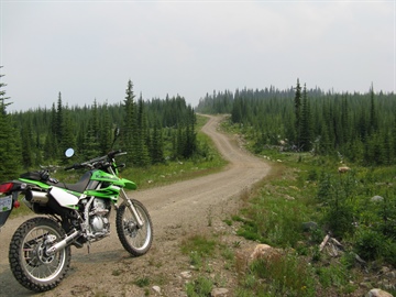 The route can be easily ridden on either a small or large dual sport bike. If you've got more aggressive tires suitable for offroad use, then the entire route should be fine for some adventure bikes too, but an adventure touring bike like a V-Strom 650, is probably not the best choice for doing the entire route, but may be doable depending on your tires and skill / comfort level. There are some switchbacks with small, loose rocks in the corners. There can be some slick sections if it's wet. Most of the FSR route is gravel / hard pack. There is some erosion. As typical of FSRs, the conditions can vary greatly over time due to use and weather. The distance markers along the route appear to be measured (approximately) from Hwy 6. There are some good views along the way, especially of the Monashee Mountains. The route reaches an elevation of about 1800m and overlaps with the Graystokes snowmobile trail network.