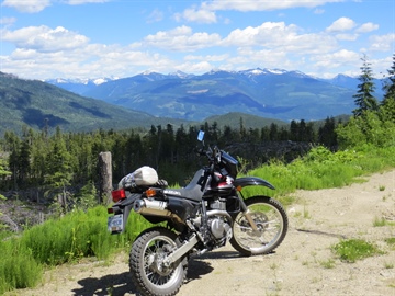 Like many FSRs, the condition of the roads varies quite a bit. Some of it is very smooth and easy going even for new riders or those on heavy bikes with more street biased tires. Other sections are rougher and steeper, but not extremely so. Even less experienced riders on dual sport bikes should be able to do the entire route without much difficulty. There are some potentially muddy sections (mostly on top). Some sections have suffered some erosion resulting in some shallow ruts. There are some inclines (not real steep) that have loose rocks and gravel, sometimes on switchbacks. It might be a bit challenging if you're riding a big adventure bike (depending on your experience and tires), but you should be able to pick a line through. I didn't have any trouble on my DR650. My wife managed fine on her DR200 and she doesn't have a lot of off-pavement riding experience and is not that confident in rough conditions. Conditions can vary a great deal depending on how wet or dry it is. Portions of the route between Kathy Lake and Lumby-Mabel Lake Road can get very dusty in the summer if there hasn't been much rain lately; it was extremely dusty (powdery, thanks to logging trucks) when I last rode it (Sept 2025). There are potentially a lot more vehicles on this portion of the route too as it's easier to drive up and shorter to Kathy Lake. There is camping and easy water access at Kathy Lake (BC Rec Site).
